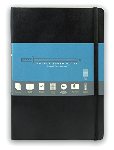 Black Softcover Journal with Ruled Pages: DIY Table of Contents, 185 Numbered Pages, Archival Stickers, Premium Paper 5.75" x 8.25", Pocket, Bookmark. Perfect Bible Journal or Diary.