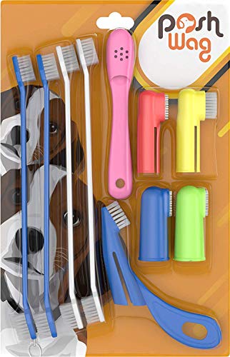 PoshWag Doggy Tooth Brush Dog Set Kit [Remove Plaque & Brighten Your PET'S Teeth] Best Dog Brush Quality Bristles, 6 Finger Brushes for All Dog or CAT Sizes and Breeds [Easy to USE]