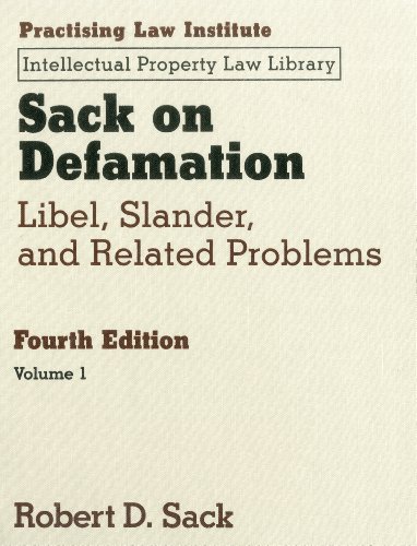 Sack on Defamation: Libel, Slander & Related Problems 2 VOLUME SET (Practising Law Institute Intellectual Property Law Library)