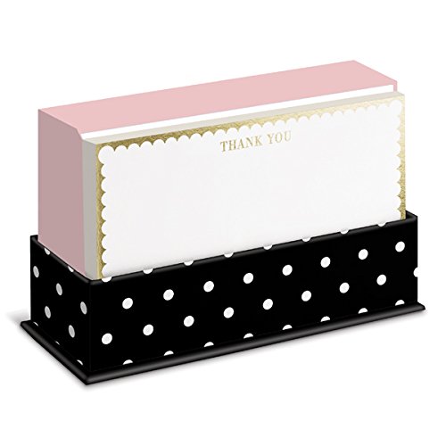 Graphique Classic Dot Flat Note Cards, Pink, Black and Gold Note Card Stationery, Printed "Thank You" Message - Includes 50 Note Cards and Matching Envelopes