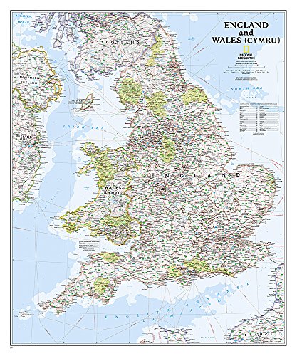 National Geographic: England and Wales Classic Wall Map - Laminated (30 x 36 inches) (National Geographic Reference Map)