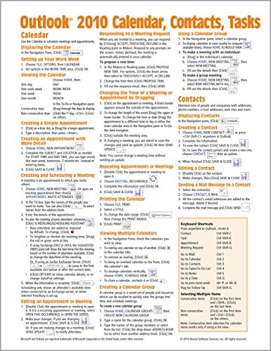 Microsoft Outlook 2010 Calendar, Contacts, Tasks Quick Reference Guide (Cheat Sheet of Instructions, Tips & Shortcuts - Laminated Card)