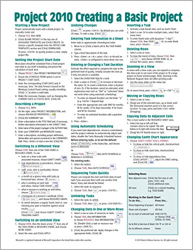 Microsoft Project 2010 Quick Reference Guide: Creating a Basic Project (Cheat Sheet of Instructions, Tips & Shortcuts - Laminated Card)