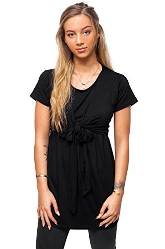sofsy Soft-Touch Rayon Blend Tie Front Nursing & Maternity Fashion Top Black Medium