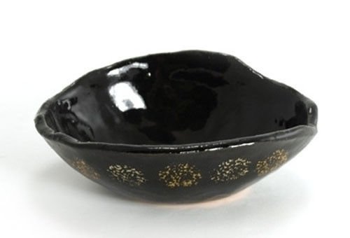 Japanese 6.25" Offshape Black Ikebana Flower Arrangement Vase, Made in Japan