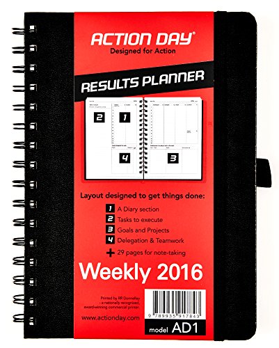 Action Day Planner 2016, Jan-Dec Calendar - Daily Weekly Yearly Organizer & Goal Journal (6x8 / Black/Spiral)