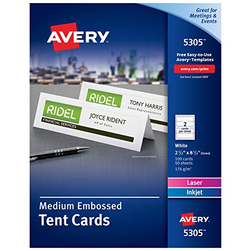 Avery Printable Tent Cards, Laser & Inkjet Printers, 100 Cards, 2.5 x 8.5 (5305)