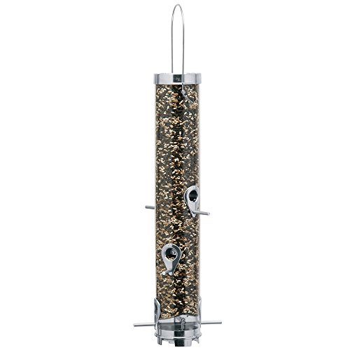Droll Yankees Bird Feeder, Hanging Tube Feeder, 20-Inch, 6 Ports, Large 2.5 qt Seed Capacity, Clear, B-7F