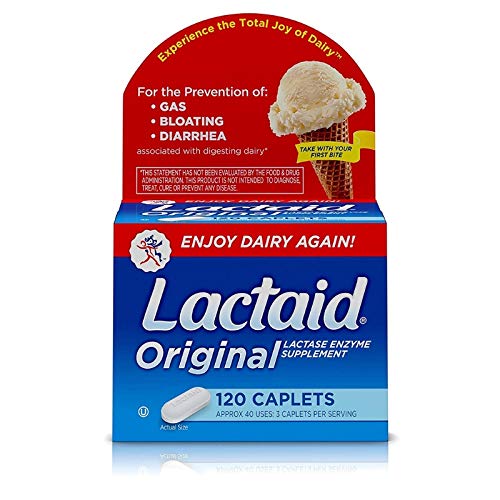 Lactaid Original Strength Lactose Intolerance Relief Caplets with Natural Lactase Enzyme, 120 ct. (Packaging May Vary)