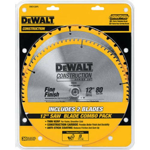 DEWALT DW3128P5 80-Tooth 12 in. Crosscutting Tungsten Carbide Miter Saw Blade - 2 Pack