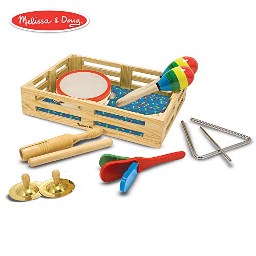 Melissa & Doug Band-in-a-Box Clap! Clang! Tap! Musical Instruments (Various Instruments, Wooden Storage Crate, 10-Piece Set, 3” H x 11.3” W x 14.9” L)