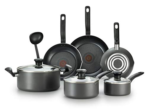 T-fal B208SA64 Initiatives Nonstick Inside and Out Dishwasher Safe Oven Safe Cookware Set, 10-Piece, Charcoal