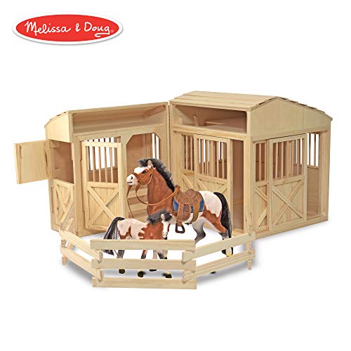 Melissa & Doug Folding Horse Stable (Pretend Play, Wooden Dollhouse With Fence, 7 Working Doors, Large Play Area)