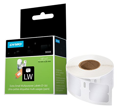 DYMO Authentic LW Extra-Small Multi-purpose Labels for LabelWriter Label Printers, White, 1/2'' x 1'', 1 roll of 1,000 (30333)