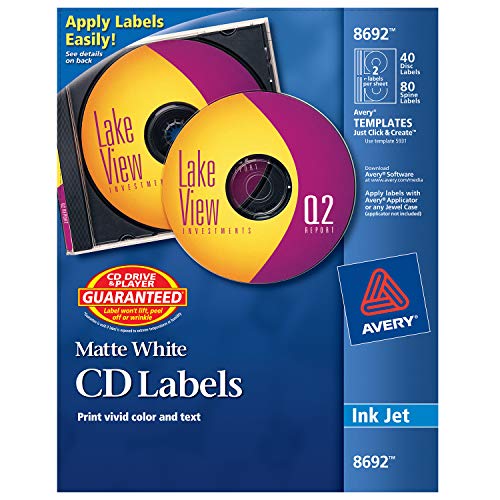 Avery CD Labels, Matte White, 40 Disc Labels and 80 Spine Labels (8692)