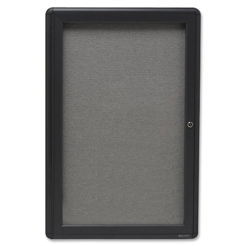 Quartet Enclosed Fabric Bulletin Board, 2 x 3 Feet, 1 Door, Black Frame with Gray Fabric (2363L)