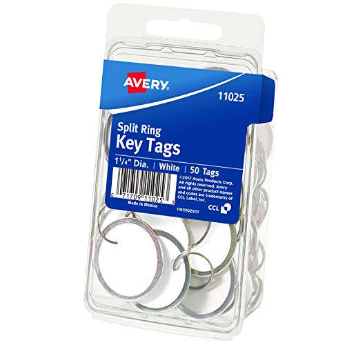 Avery Metal Rim Key Tags, White Card Stock/Metal Rim, 50 Key Ring Tags Included (11025)