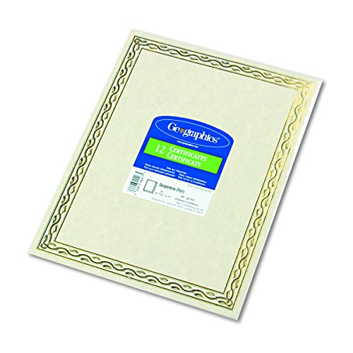 Geographics 44407 Foil Stamped Award Certificates, 8-1/2 x 11, Gold Serpentine Border (Pack of 12)