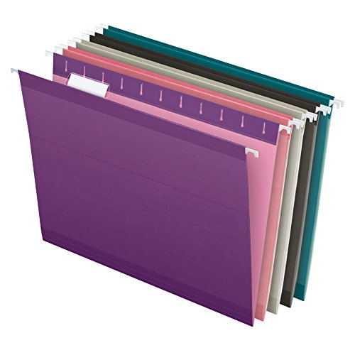 Pendaflex Reinforced Hanging File Folders, Letter Size, 1/5 Cut, Assorted Jewel-Tone Colors, 25/BX (4152 1/5 ASST2)