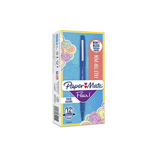Paper Mate Flair Felt Tip Pens, Medium Point (0.7mm), Blue, 12 Count