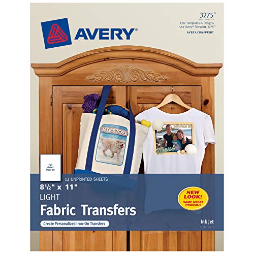 Avery Printable T-Shirt Transfers, For Use on Light Fabrics, Inkjet Printers, 12 Paper Transfers (3275)