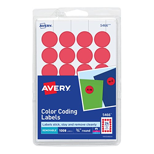 Avery Print/Write Self-Adhesive Removable Labels, 0.75 Inch Diameter, Red, 1008 per Pack (5466)