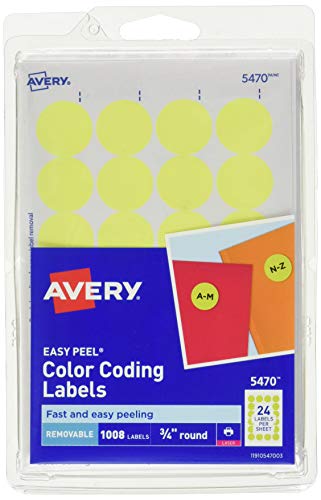 Avery Round Color-Coding Labels 3/4 in, Neon Yellow, 1008/Pack - AVE05470