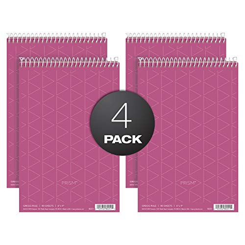 TOPS Prism Steno Books, 6" x 9", Gregg Rule, Pink Paper, Perforated, 80 Sheets, 4 Pack (80254)