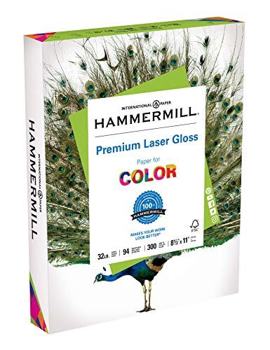 Hammermill Paper, Premium Laser Gloss Paper, 8.5 x 11 Paper, Letter Paper, 32lb Paper, 94 Bright, 1 Pack / 300 Sheets (163110R) Acid Free Paper