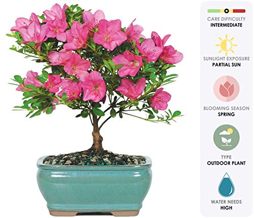 Brussel's Live Satsuki Azalea Outdoor Bonsai Tree - 5 Years Old; 6" to 8" Tall with Decorative Container