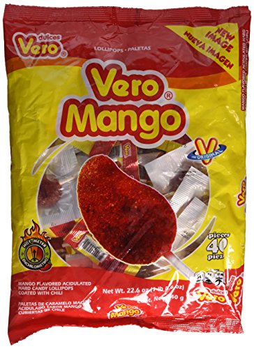 Vero Mango, Chili Covered Mango Flavored Lollipops, 40 Pieces