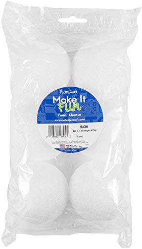 Floracraft Styrofoam Balls, 3-Inch, White, Pack of 6
