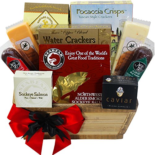 Meat and Cheese Lovers Gourmet Food Gift Basket with Smoked Salmon