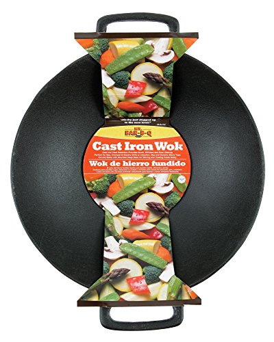Mr. BBQ 18 Inch Cast Iron Stove and BBQ Wok with Flat Bottom - Pre-Seasoned Cast Iron Cookware Ideal for BBQ, Grill, Tailgating, Stove Tops Etc. - Perfect for any, Stir Fry, Seafood or Meat