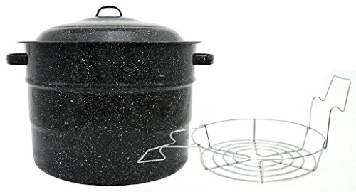 Granite Ware Steel/Porcelain Water-Bath Canner with Rack, 21.5-Quart, Black