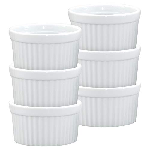 HIC Ramekins, Fine White Porcelain Souffle, 3-Inch, 4-Ounce Capacity, Set of 6