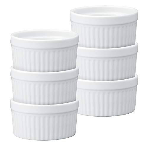 HIC Ramekins, Fine White Porcelain Souffle, 4-Inch, 8-Ounce Capacity, Set of 6