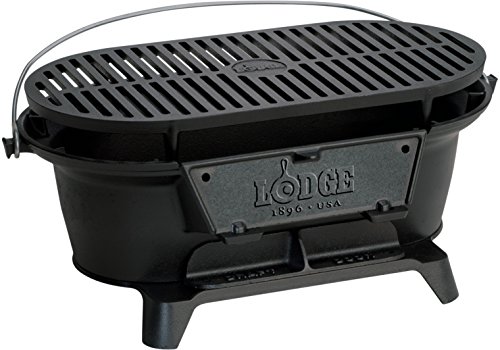 Lodge Cast Iron Sportsman's Grill. Large Charcoal Hibachi-Style Grill for Picnics, Tailgaiting, Camping or Patio. Two Adjustable Heights.