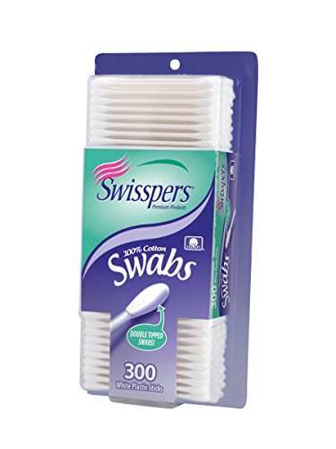 Swisspers Cotton Swabs, 100% Cotton Double-Tipped, White Plastic Sticks, 300 Count Package