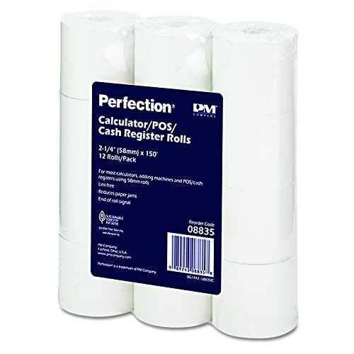 PM Company Perfection POS/Calculator Rolls, 2.25 Inches x 150 Feet, White, 12/Pack (08835)