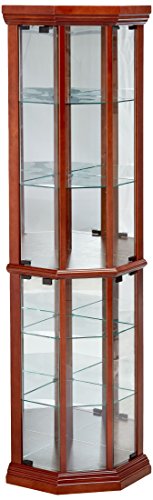 Glass Corner Curio Cabinet with 6-Shelf Medium Brown