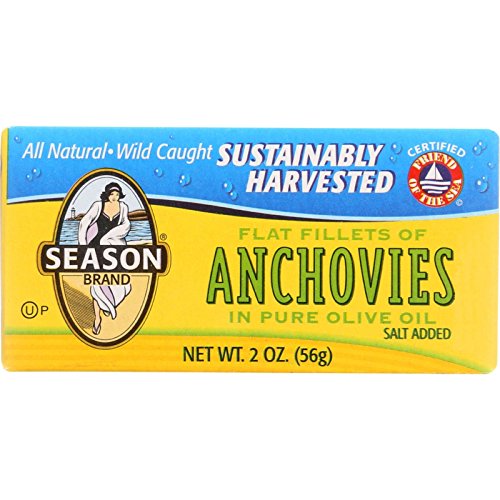 Season Brand Flat Fillets of Anchovies in Olive Oil, 2 oz