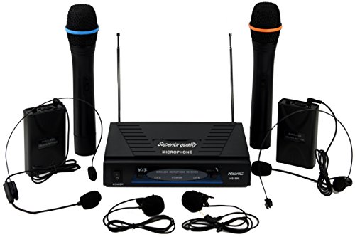 Hisonic HS596B Dual Wireless Microphone System, Deluxe Package: 2 Handheld & 2 Body Pack Transmitter with 2 Lavaliere and 2 Headset Microphones