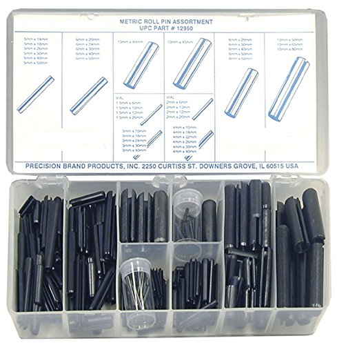 Carbon Steel Slotted Spring Pin Assortment (287 Pieces), Plain Finish, Metric, With Case