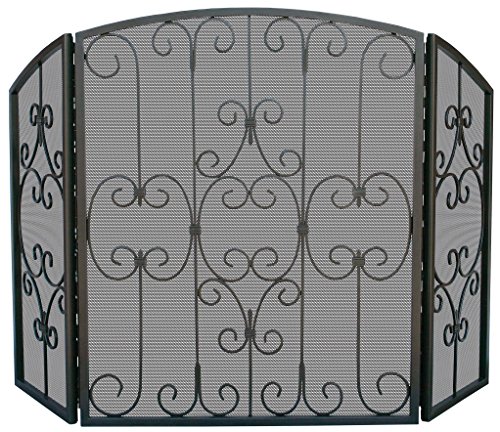 Uniflame 3-Fold Graphite Screen with Decorative Scrollwork