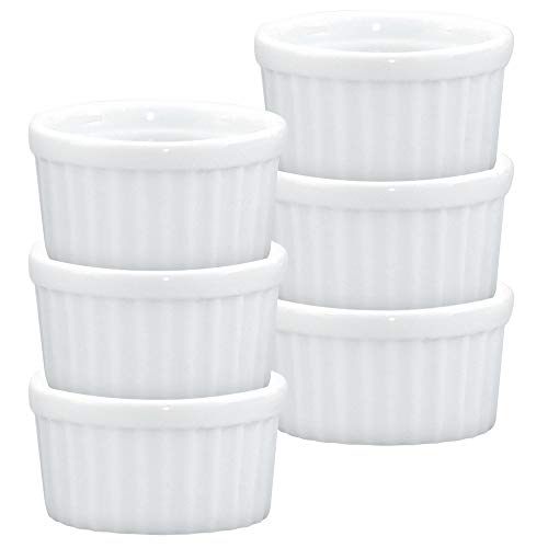 HIC Ramekins, Fine White Porcelain, 2.5-Inch, 2-Ounce Capacity, Set of 6