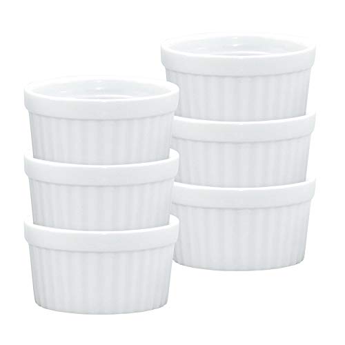 HIC Ramekins, Fine White Porcelain Souffle, 3-Inch, 3-Ounce Capacity, Set of 6