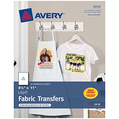 Avery Printable T-Shirt Transfers, For Use on Light Fabrics, Inkjet Printers, 18 Paper Transfers (8938)