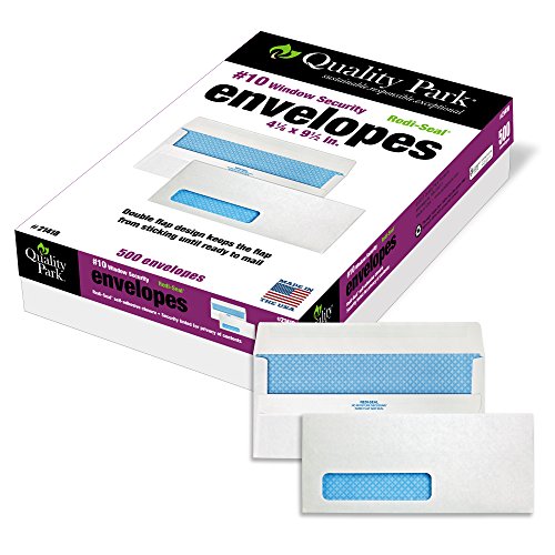 Quality Park #10 Left Window Security Tinted Envelopes with a Self Seal Closure for Standard Business Mailings, 24 lb. White Wove, 4-1/8 x 9-1/2, 500 per Box (21418)