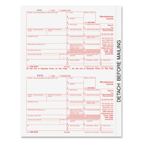 TOPS-5-Part Miscellaneous 1099 Tax Forms for Laser Printers 50 Pack (22993)